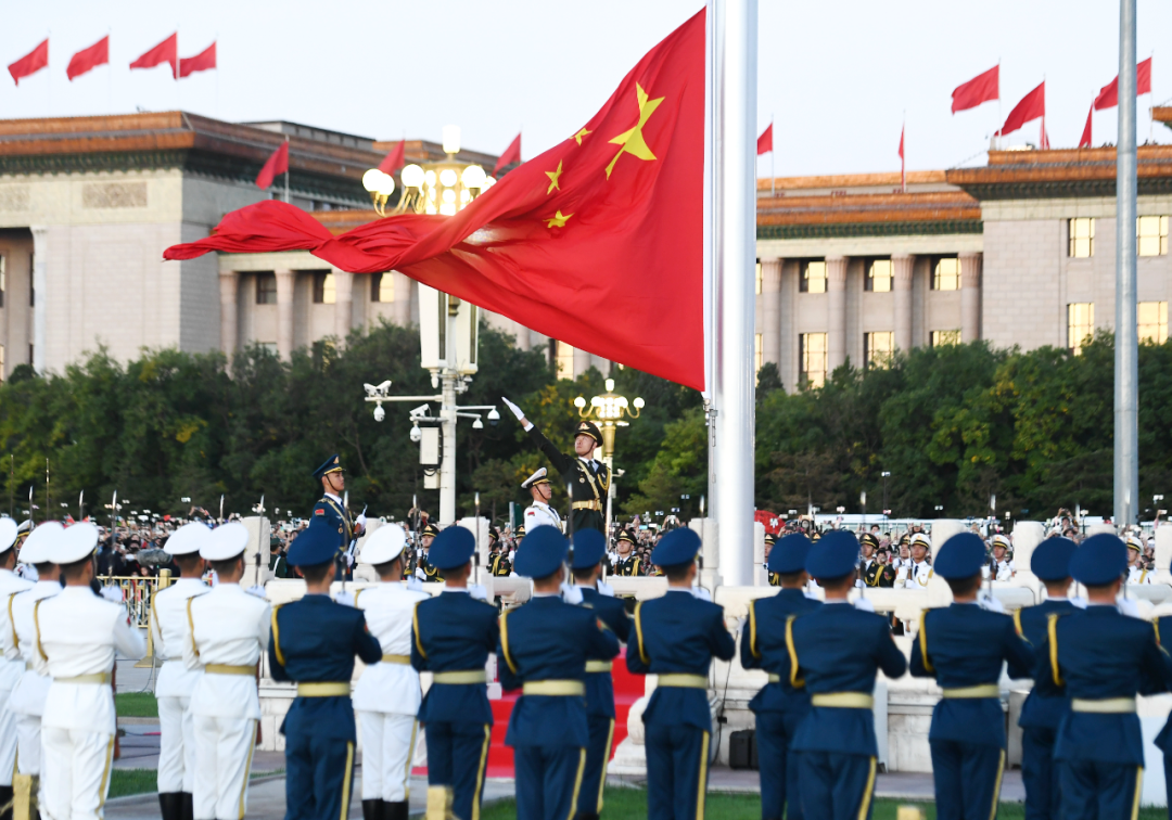 2023年10月1日清晨,隆重的升国旗仪式在北京天安门广场举行,庆祝中华人民共和国成立74周年。新华社记者 张晨霖 摄