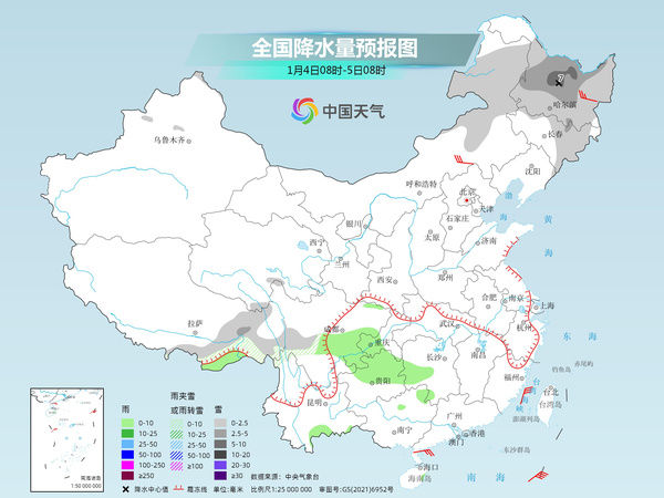 今明天,江南、华南等地的降雨将明显减少,同时,内蒙古东部、东北地区等地的降雪将会增多。