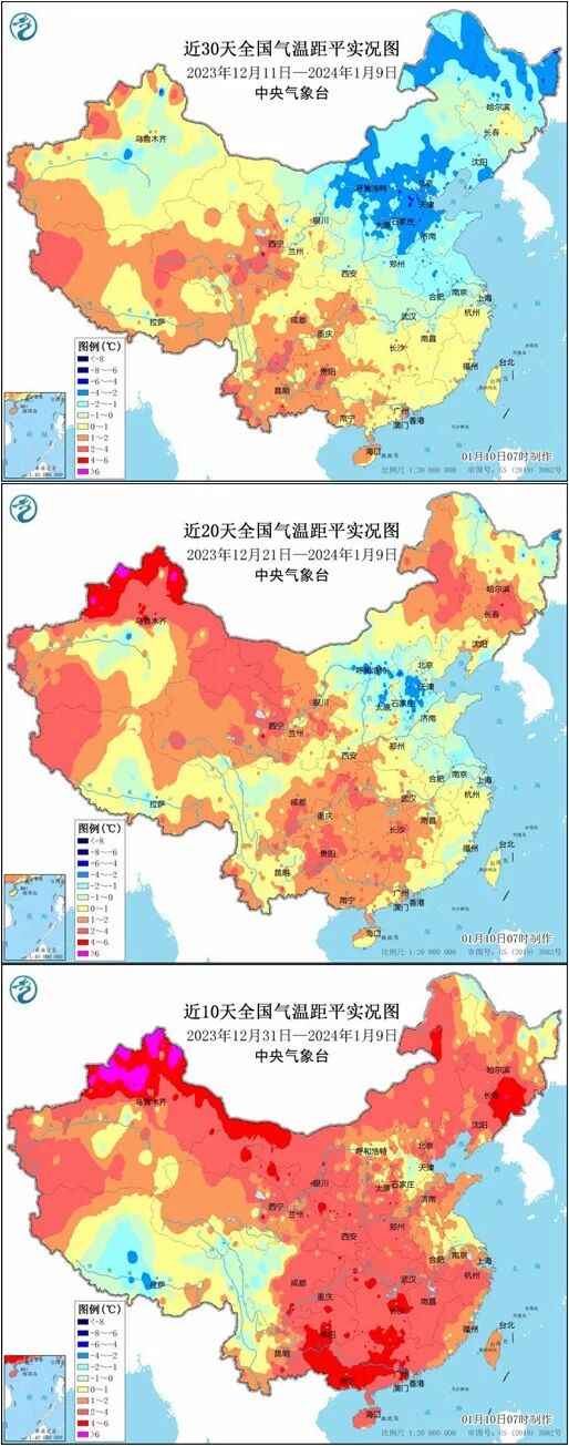 ▲从近30天到近10天的全国气温距平实况图看到,尽管最近气温大回暖,但仍难完全消解12月中旬那次寒潮带来的持续低温影响,近30天平均气温来看,华北、东北等地仍是偏冷。