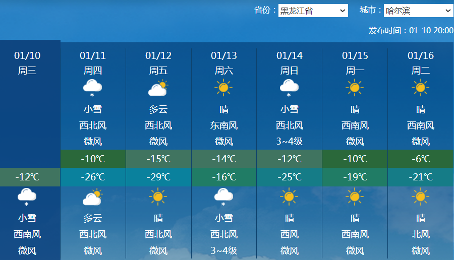冷空气依然频繁。今明两天,冷空气将影响内蒙古东部以及东北一带,尤其黑龙江部分地区降温幅度可达到6~10℃,像哈尔滨最高气温将从-8℃降到-15℃。