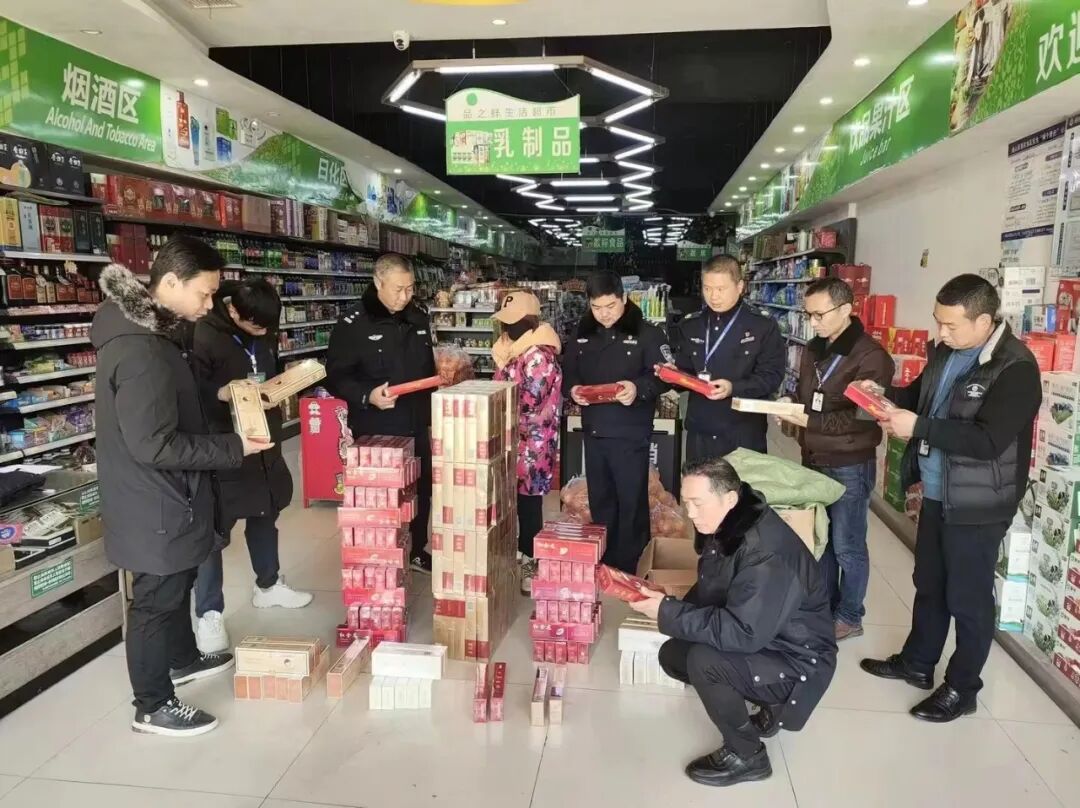 行动中,检查组采取“突击”检查方式前往九宫山镇、洪港镇等乡镇,重点围绕商超、便利店等经营性场所销售卷烟情况进行检查,重点对所销售烟草的商标、防伪标识、生产日期、产品编码等信息进行了核对查验,并检查各经营场所销售许可证件是否齐全、进货渠道是否合法,有无销售假烟、私烟等情况。同时,采取以案释法、以案普法等形式,在商户间广泛开展涉烟法律法规的宣传,引导商户守法经营,彰显“严治、严打、严管、严惩”真烟异常流动的决心。