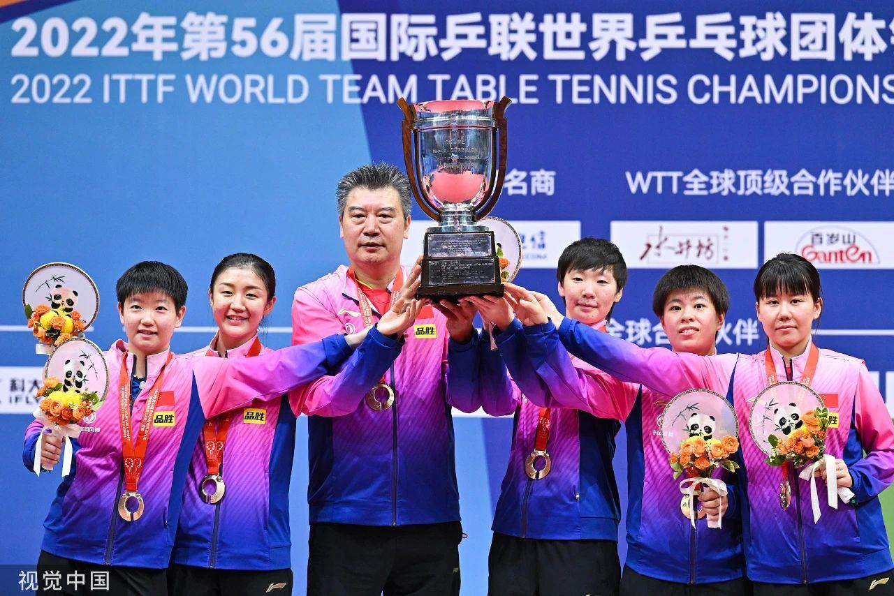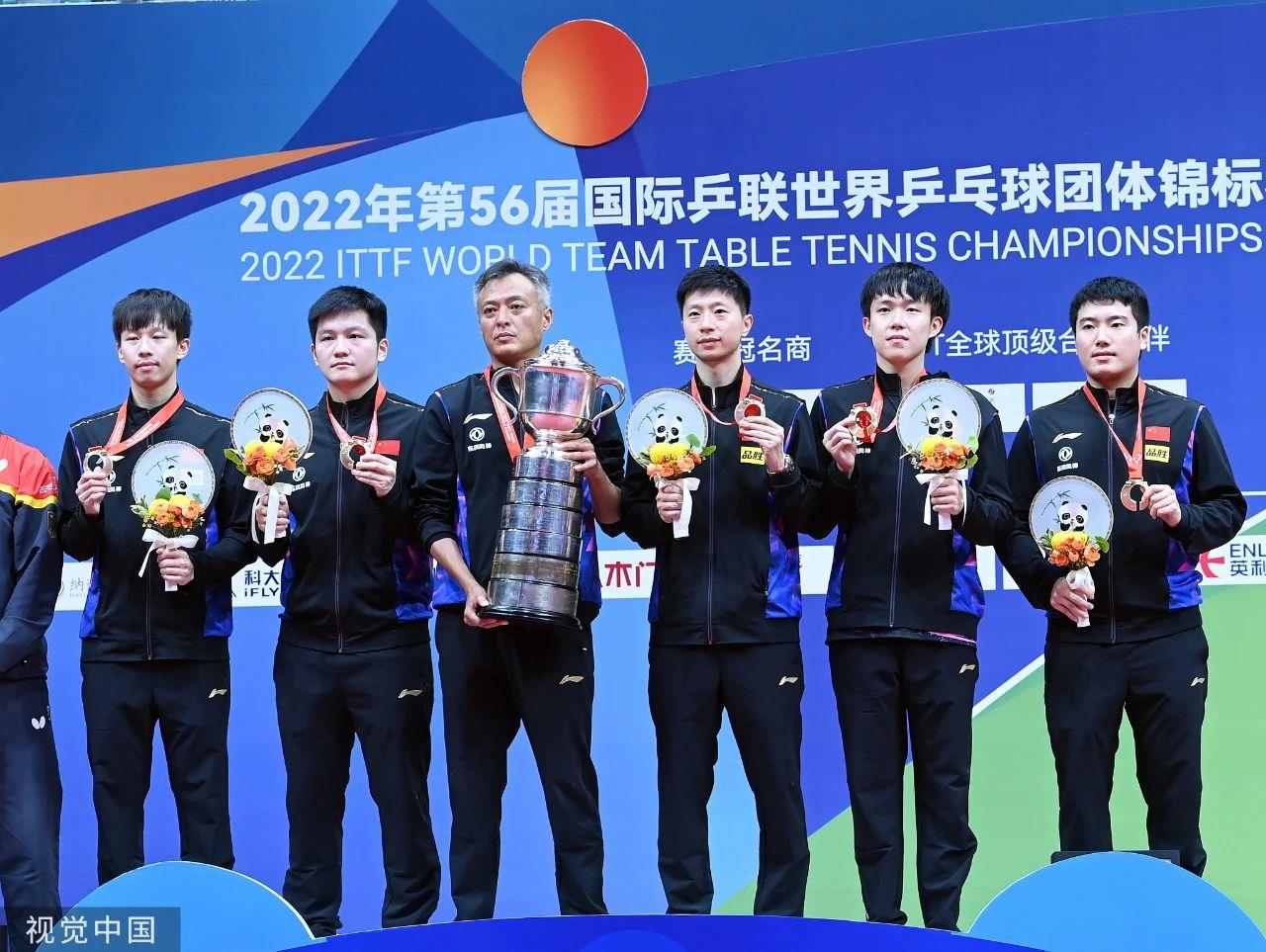 2022年成都世乒赛团体赛,中国乒乓男团3:0完胜德国男团,实现十连冠。