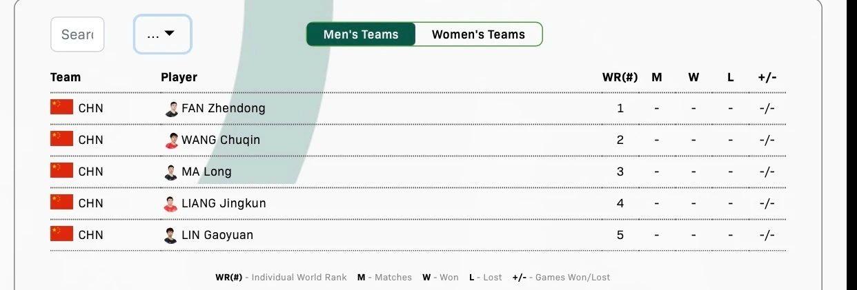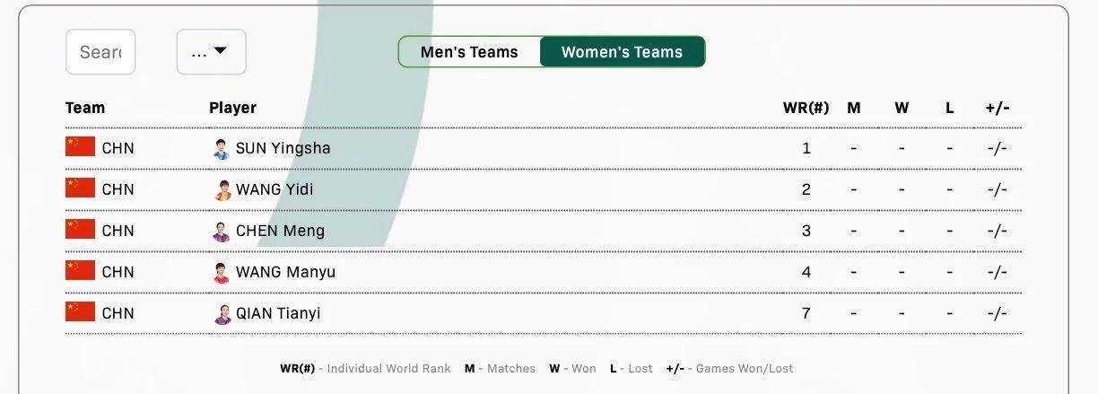 2024年釜山世乒赛团体赛将于2月16日—25日举行,国际乒联官网于1月16日公布了中国队参赛名单:女队孙颖莎、王艺迪、陈梦、王曼昱、钱天一出战。男队阵容为樊振东、王楚钦、马龙、梁靖崑、林高远 。