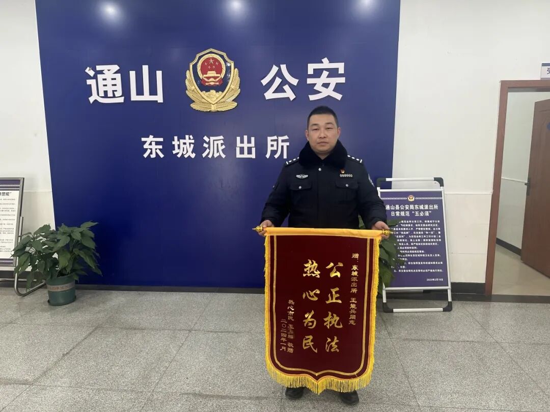 事后,叔侄将一面印有“公正执法,热心为民”的锦旗,送到东城派出所民警手中,对民警长期以来的热心调解表示诚挚的感谢。