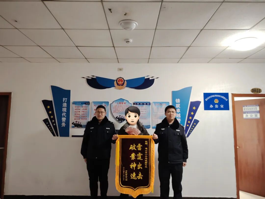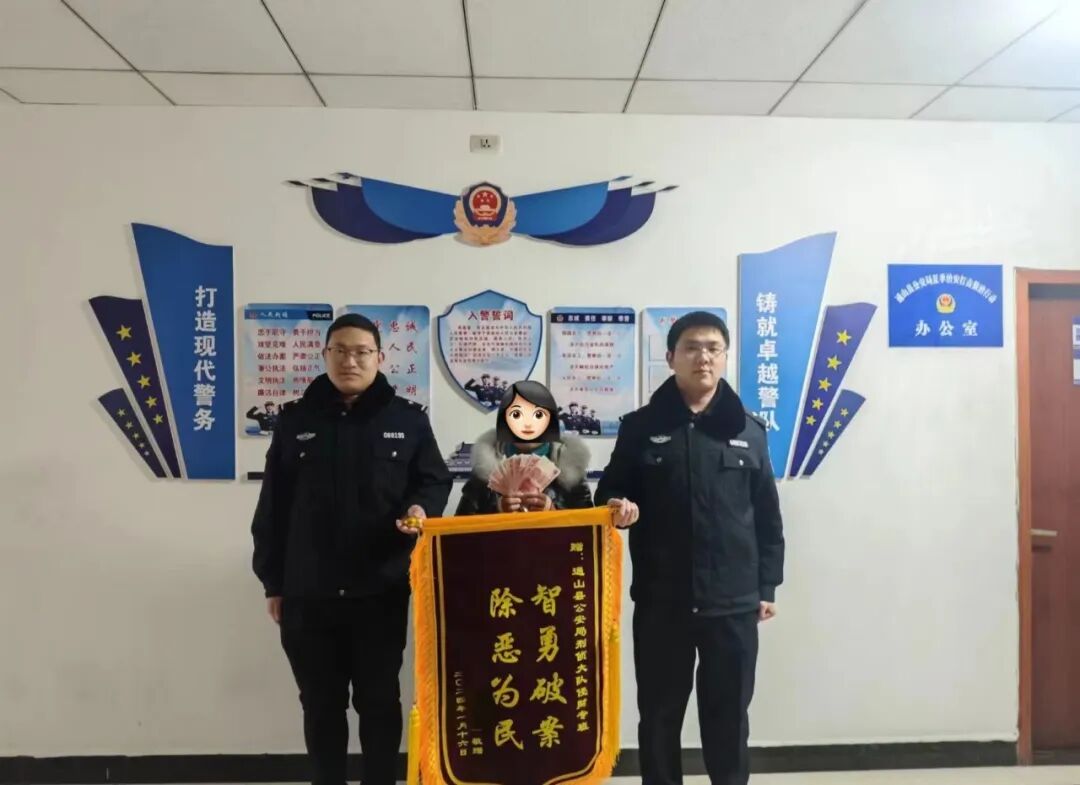 1月 17 日,受害群众徐先生、阮女士来到通山县公安局领取了被盗的现金,对民警快速破案为其挽回经济损失表示高度赞扬,并送上锦旗以示感谢。
