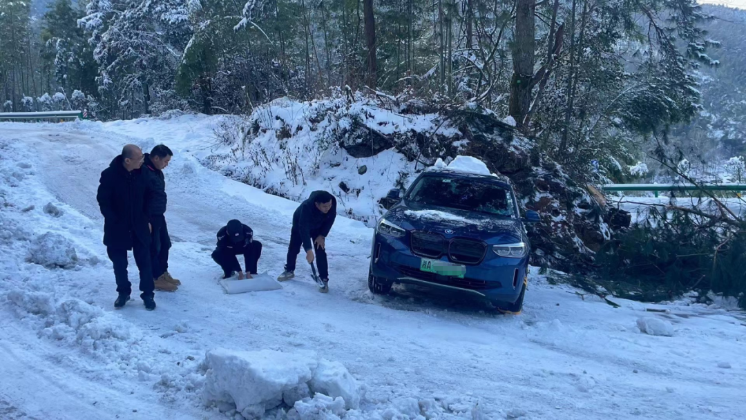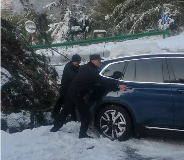 由于该路段温度较低,且积雪深厚,清理过程十分艰难,经过半个小时的清理,最终成功帮助被困车辆脱困,全力保障了游客的生命财产安全及道路畅通。