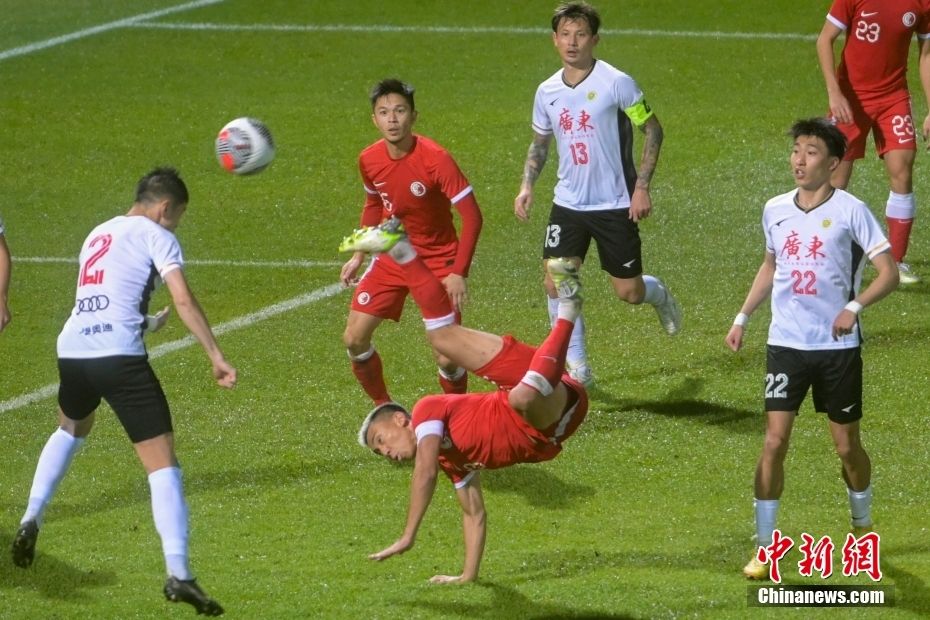 中国香港男子足球队以2比0战胜广东队 取得省港杯首回合胜利 2024-02-01 08:49 0 1月31日晚,阔别四年的省港杯在香港旺角大球场拉开帷幕,中国香港男子足球队以2比0战胜广东队,取得首回合胜利。 图为中国香港男子足球队队员李毅凯(红衣倒挂者)进攻。 图为中国香港男子足球队队员潘沛轩(红衣14号)射门。 来源:中新网