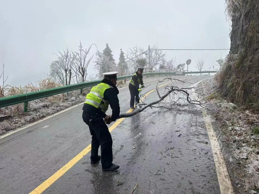 面对连日来的低温雨雪冰冻天气,该局各单位根据辖区道路实际情况和特点,在辖区重点路口、路段增设执勤点,加大对过往车辆的指挥和疏导,提升通行效率,并进行安全预警,提醒过往驾驶员减速慢行,谨防交通事故发生。在长下坡路段,执勤人员不间断帮助制动打滑车辆推车,视情采取远端分流、分段放行、分车型放行等措施,确保道路安全畅通。在国省道,民警持续开展巡逻管控,通过喊话、闪警灯等方式提醒驾驶人控制行驶速度,保持安全行车距离。强化部门协作,在国省道、城区重要路段协助部门工作人员进行路面撒盐、防滑沙处理,帮助清扫路面积雪,护航出行百姓平安路。