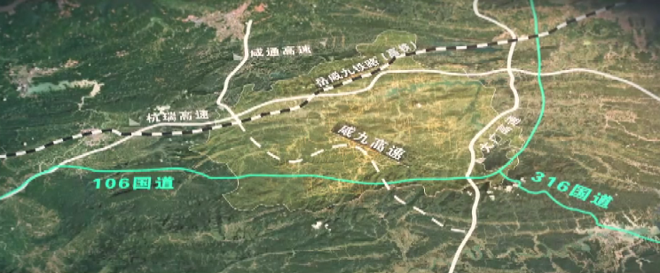 通山区位优越 交通便捷,是武汉 长沙 南昌“中三角”、咸岳九“小三角”中心节点,距武汉天河机场 武汉阳逻港 长江嘉鱼码头均在90分钟车程以内,境内杭瑞 大广 咸通三条高速,106 316两条国道和正在施工建设的咸九高速以及规划中的岳咸九铁路(高铁)(已列入湖北省铁路交通运输“十四五”规划建设重点项目,并在通山南林规划设立站点。)纵横交错。