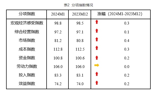 中国中小企业协会的调查显示,受稳增长政策加力提效推动,1月份中小企业发展信心有所提振;企业的市场预期逐步改善,带动了企业投资意愿也在回升。具体来看,1月份,8个分行业指数中,6个都在上升,8个分项指数除一个持平外,其余都在上升。