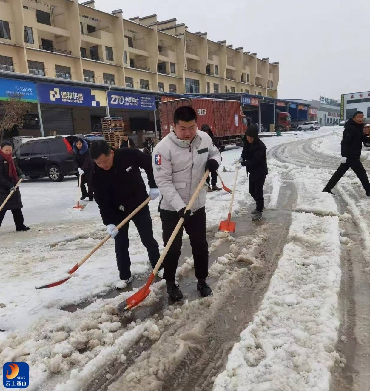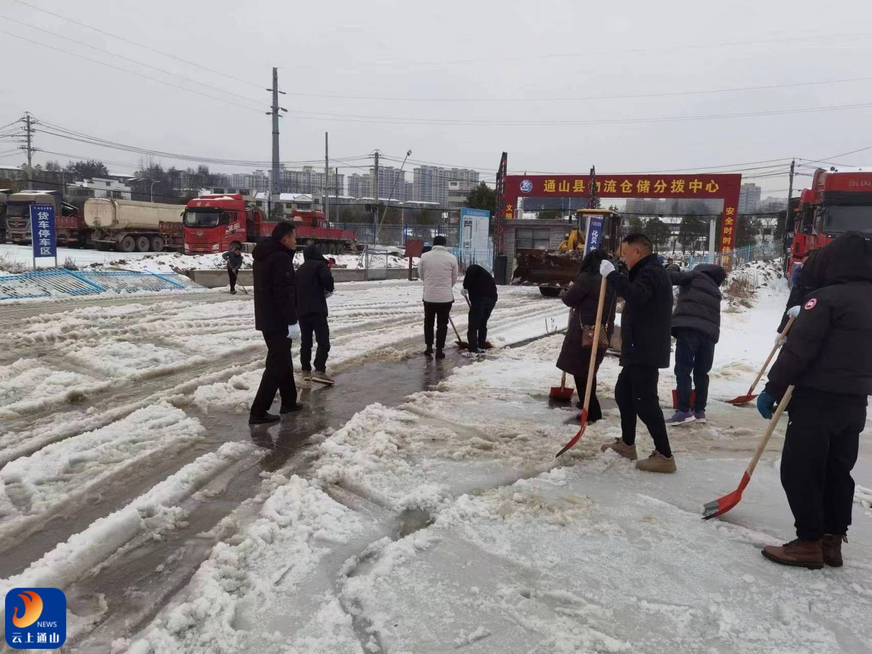 云上通山报道:(全媒体记者 伍文俊 见习记者 袁诚 汪盈盈 通讯员 阮晓东)2月22日上午,县物流发展中心全体职工前往物流园,除雪铲雪,保障物流中心正常运转。