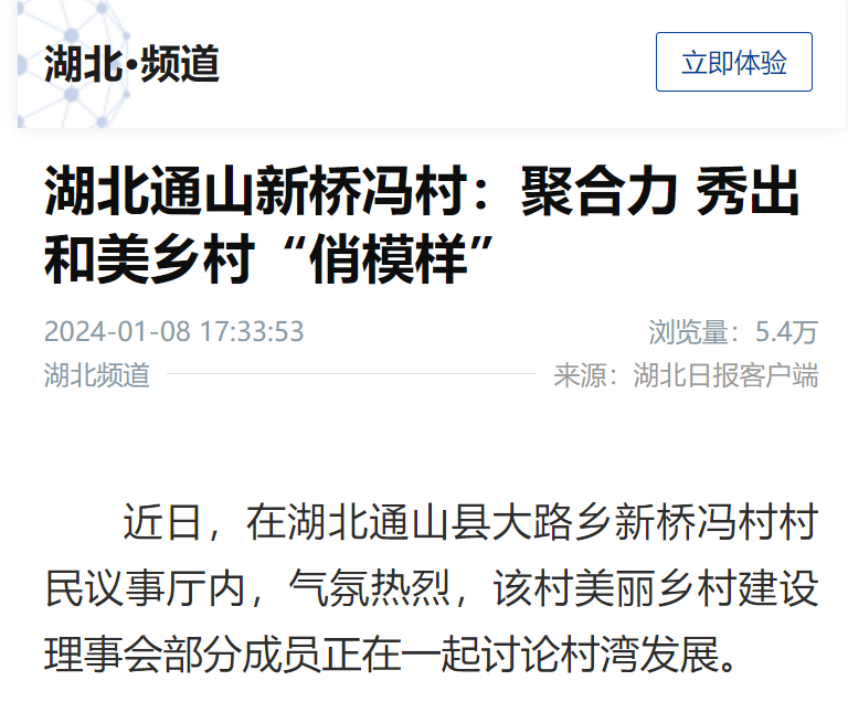 1月8日:《湖北通山新桥冯村:聚合力 秀出和美乡村“俏模样”》