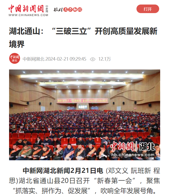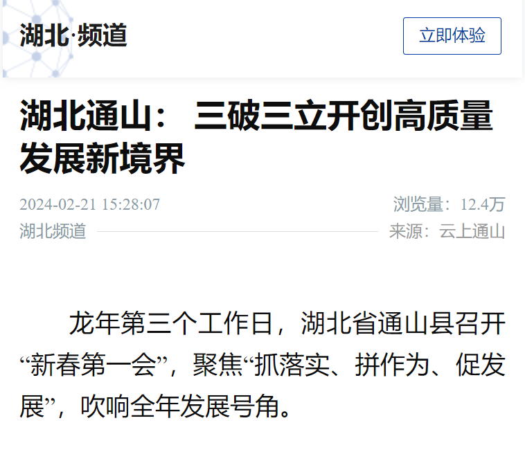 2月21日人民日报客户端湖北频道:《湖北通山: 三破三立开创高质量发展新境界》