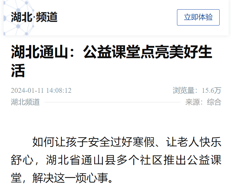 1月12日:《湖北通山:“公益课堂”点亮群众美好生活》