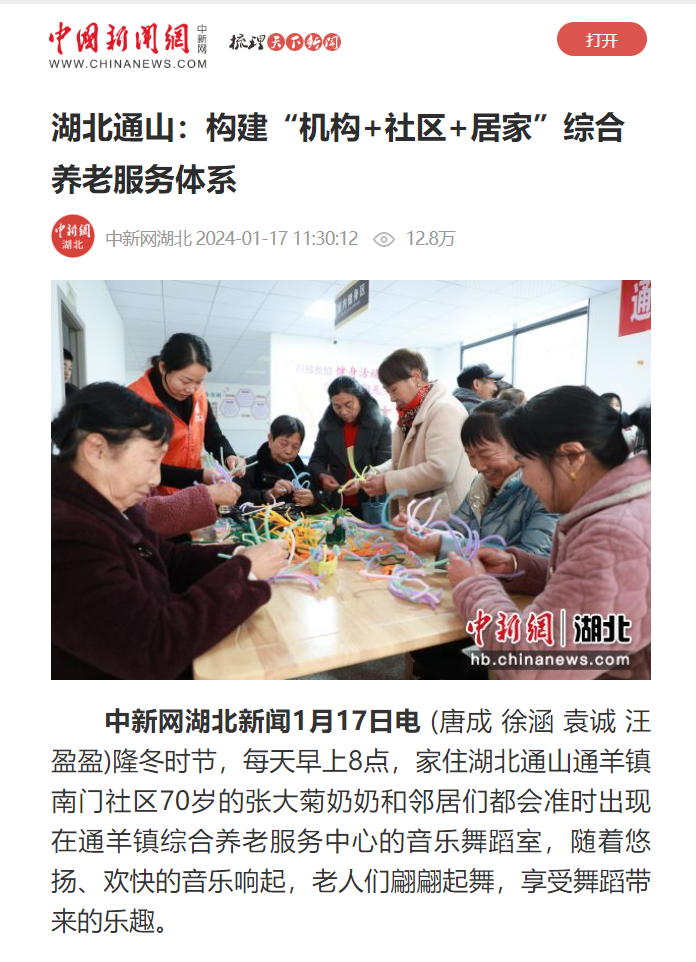 1月17日:《湖北通山:构建“机构+社区+居家”综合养老服务体系》