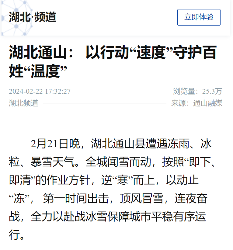 2月22日人民网:《湖北通山:快速应对守护群众出行“温度”》