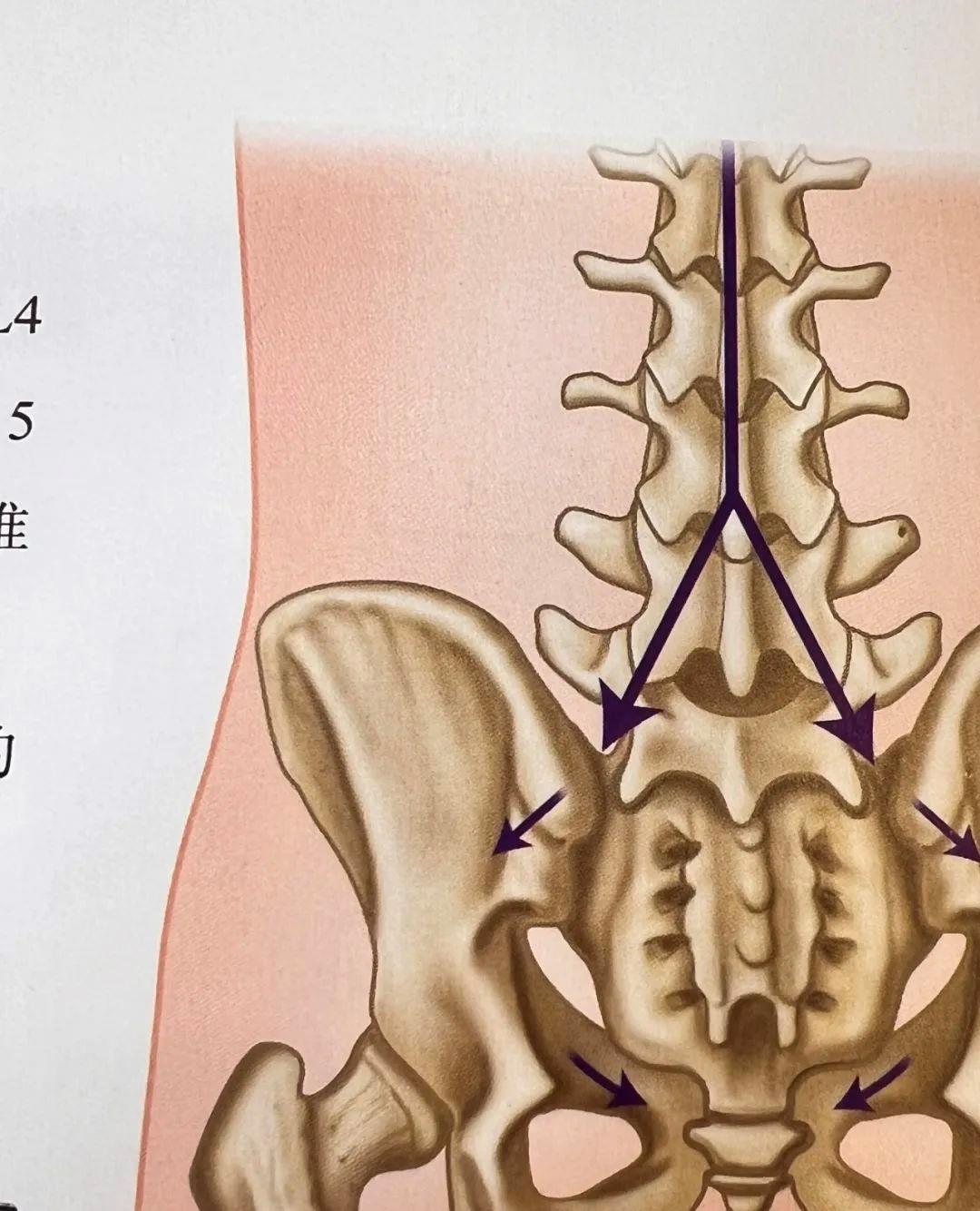骶髂关节很重要,它是一个承上启下的中枢关节,它干的活儿有点多,既要从上到下传导力和动作,又得从下到上吸收地面传来的冲击力。