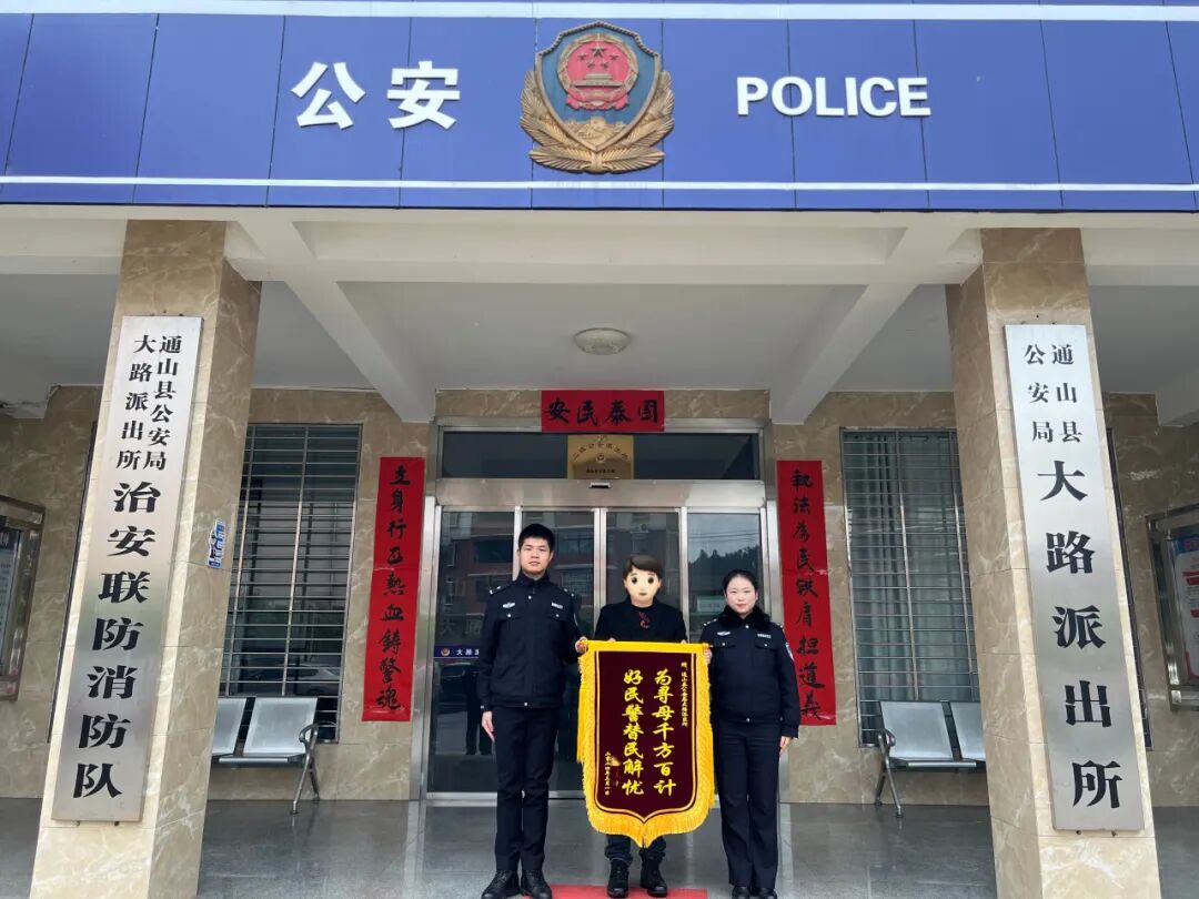 3月1日,辖区居民吴先生将一面印有“为寻母千方百计,好民警为民解忧”的锦旗送到通山县公安局大路派出所民警手中,感谢民警对其母亲的及时救助。