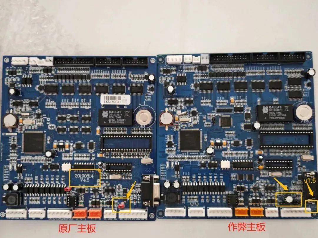 2023年3月,根据公安部门提供的线索,浙江省江山市市场监管部门检查一家问题加油站时,发现该加油站5台加油机安装了既可“偷油”又可偷税的作弊计控主板。