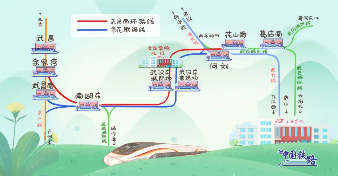穿城而过的铁路连接着城市的各个角落,承载着大量客货运输任务。有人说,武汉是座“枢纽链接之城”,同时又是座“大学之城”,大学校门与火车组合在一起,不正是“枢纽链接之城”与“大学之城”的交相辉映吗。