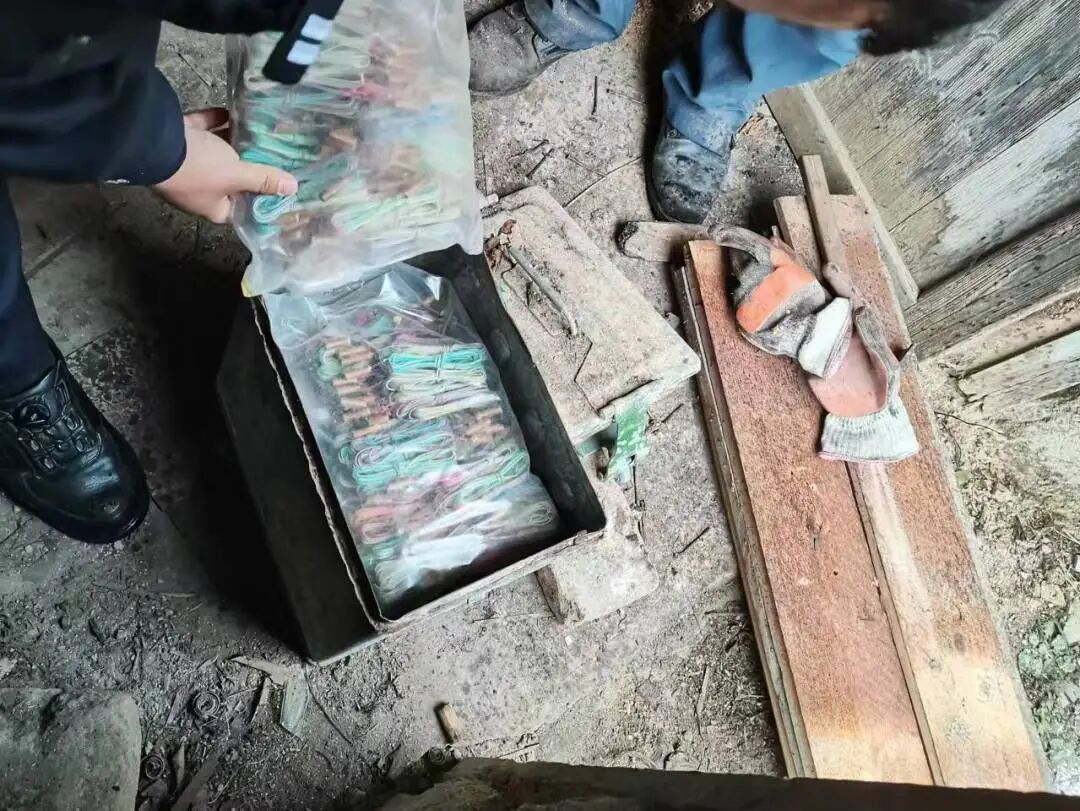 “不要随意搬动!我们马上过来!”得知情况后,所长肖斌立即带领民警赶赴现场处置。经民警现场清理,其数量高达590枚,存在较大安全隐患。为了确保安全,洪港派出所依法收缴了这批雷管,并安全移交治安大队进行处理。