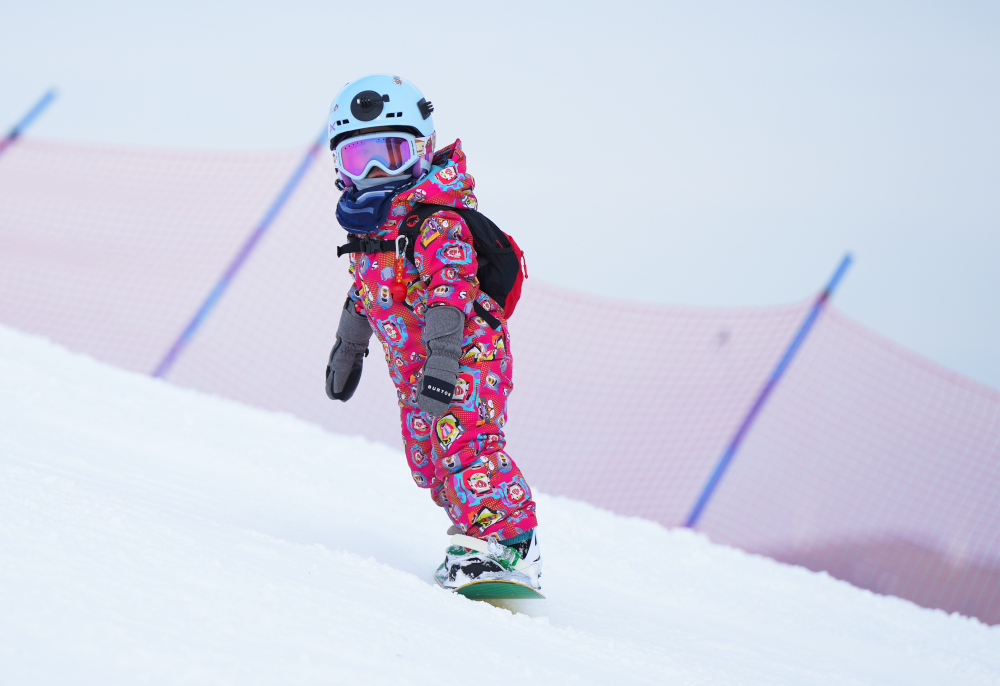 “她太小了,之前谈不上学习太多技巧,只是蹲在雪板上,体验运动带来的快乐。现在贝贝(王予玑小名)能够站在雪板上,掌握好多技能,可以去滑追逐道,还能简单尝试公园道具。”王予玑的爸爸王枢说。