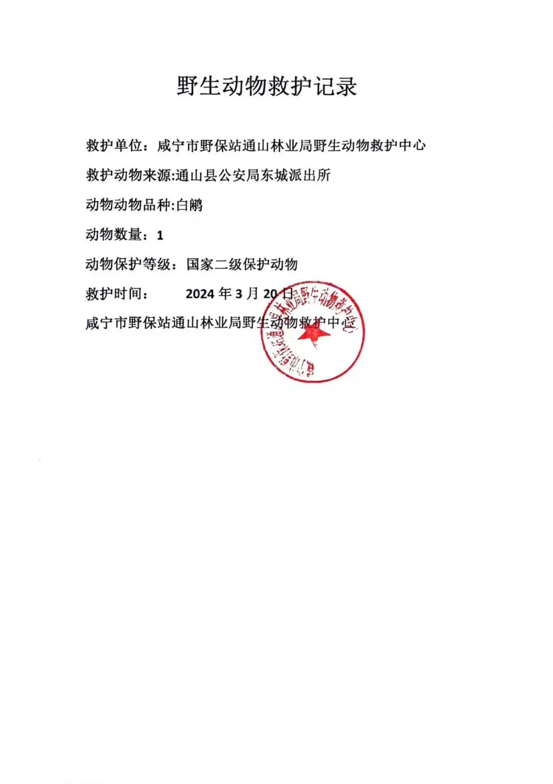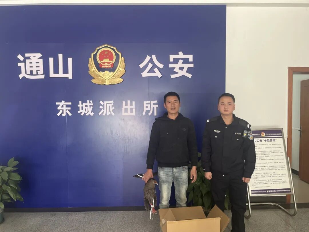 3月20日下午,通山县公安局东城派出所与爱心群众携手救助一只“林中仙子”——国家二级重点保护野生动物白鹇。