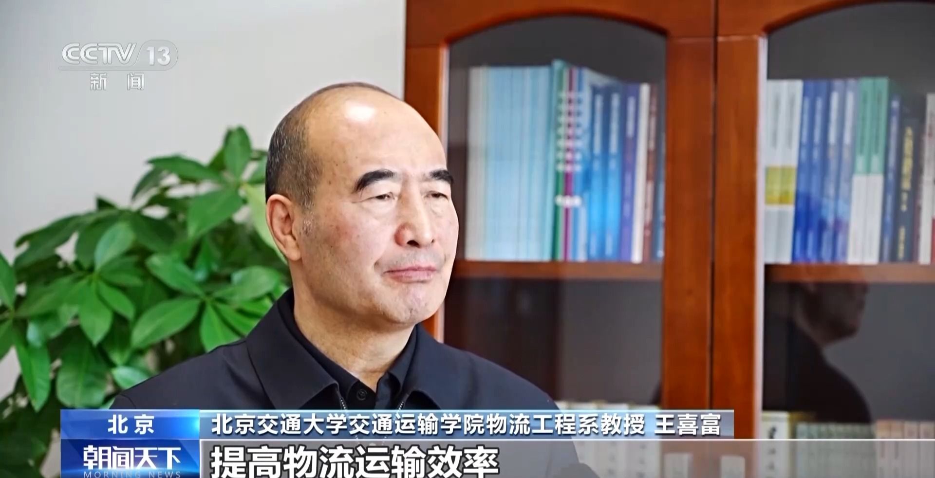 北京交通大学交通运输学院物流工程系教授 王喜富:从综合的交通运输体系上看,我觉得着力提升铁路货运量和水运货运量,是降低成本最有效的方式。因为铁路货运量,我们大概统计过,每提高铁路货运量1个百分点,有可能带动整个物流成本降低0.2到0.5个百分点。
