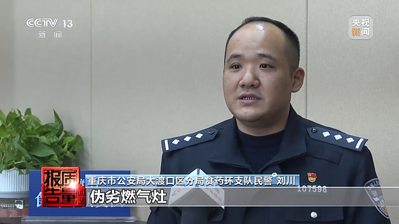 重庆市公安局大渡口区分局食药环支队副支队长 舒雷杰:穿着那种燃气公司工作服,冒充维修检修人员,入户对那个居民进行所谓检修,对燃气灶的一个检修,来对他自带的燃气灶进行兜售。