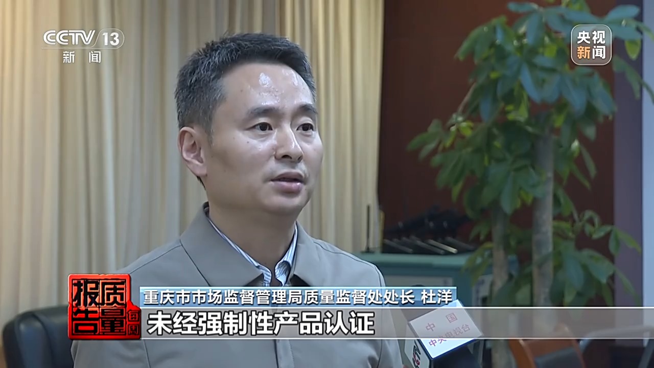 重庆市市场监督管理局质量监督处处长 杜洋:强制性产品认证目录内的产品,未经强制性产品认证,一律不得出厂销售,否则就是一个违法行为。