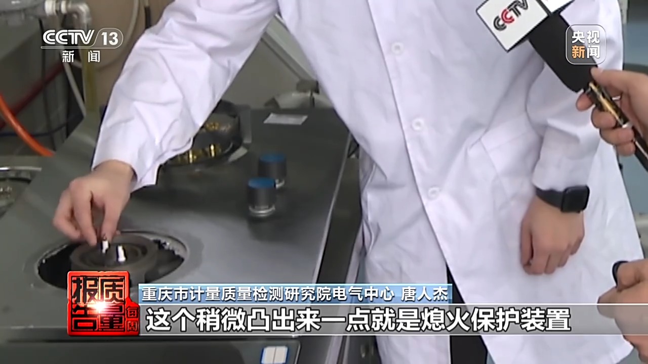 重庆市计量质量检测研究院电气中心 唐人杰:通常在燃气灶上会看到两个针,其中一个针,比如说这个就是一个电点火装置,这个稍微凸出来一点就是熄火保护装置。