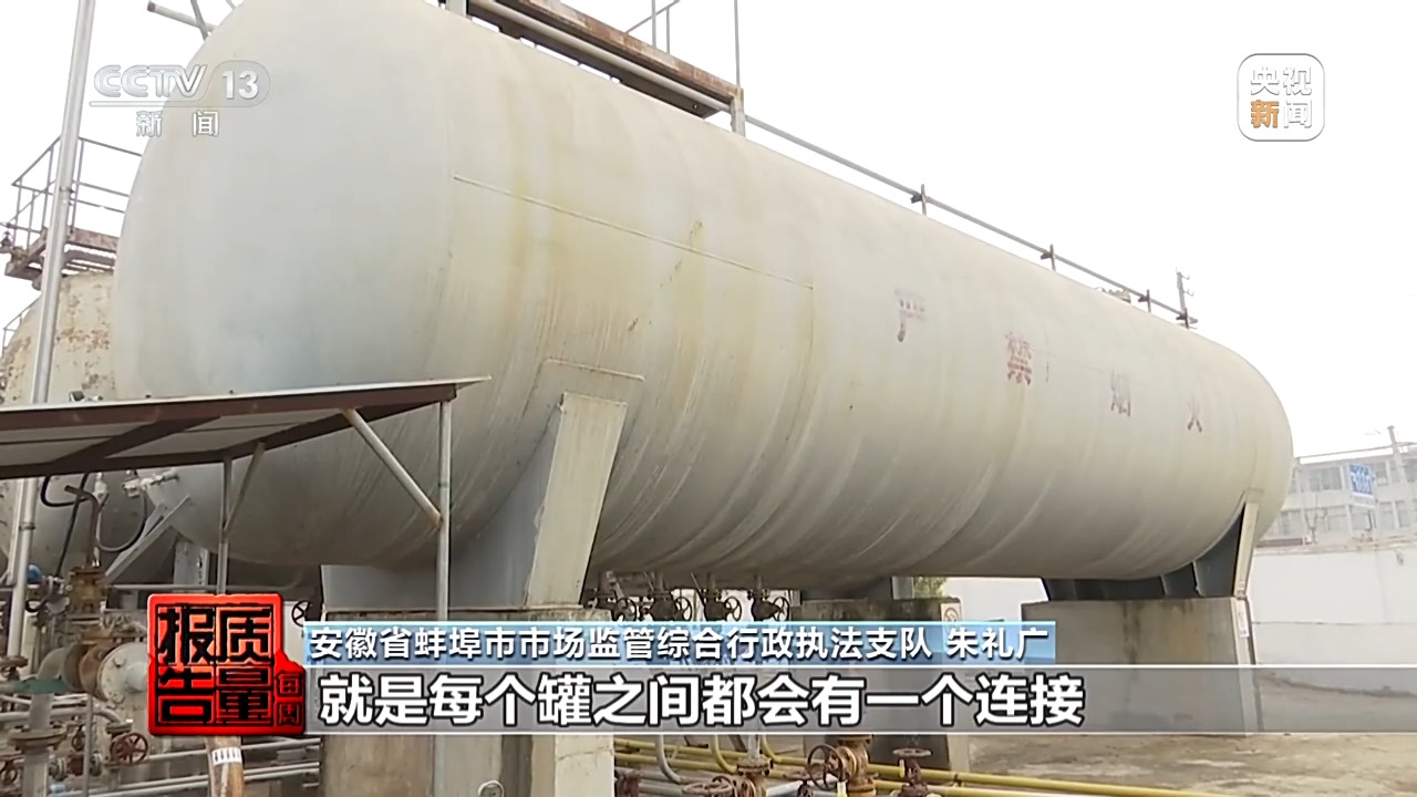 安徽省蚌埠市市场监管综合行政执法支队 朱礼广:你像河溜镇液化气充装站,它有四个罐,就是每个罐之间它都会有一个这个连接,连接有开关,有很多种组合,就是说如果你技术上对这个罐的管阀的输气进气分辨不清的话,很难发现, 比方说我指定一号罐的气体要充装的话,有可能会给你充出来还是二号罐的气体,如果二号罐气体放的是液化气的话,你怎么抽,都抽不出来添加二甲醚的这样一个气体出来。