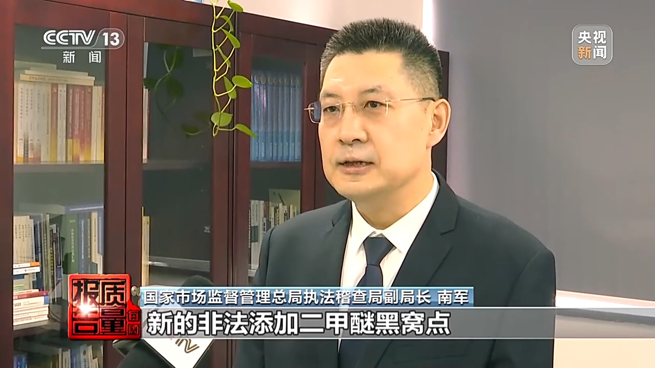 国家市场监督管理总局执法稽查局副局长 南军:通过行刑衔接,对涉案的51名当事人全部审查起诉,并顺藤摸瓜捣毁了一处新的非法添加二甲醚黑窝点,现场采取强制措施3人。