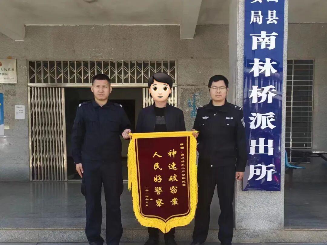 3月20日,工地负责人将一面“神速破窃案,人民好警察”的锦旗送至南林桥派出所,对民警高效快速侦破工地铝合金被盗案件,成功挽回企业损失表示感谢。