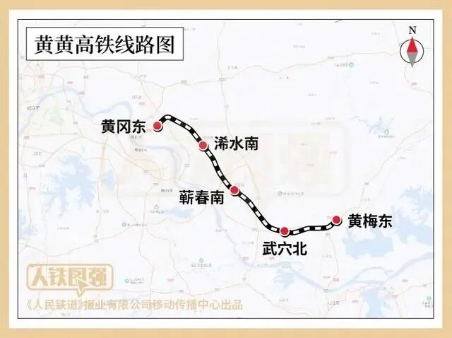黄黄高铁于2022年4月22日正式开通运营,是连接湖北省黄冈市和黄梅县的高速铁路,线路全长127公里,设计时速350公里,全线设黄冈东、浠水南、蕲春南、武穴北、黄梅东5座车站。