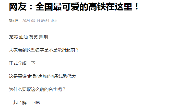 前段时间,央媒点赞了全国几条“最可爱高铁”,以叠词命名的高铁线路让人感觉“萌萌哒”。