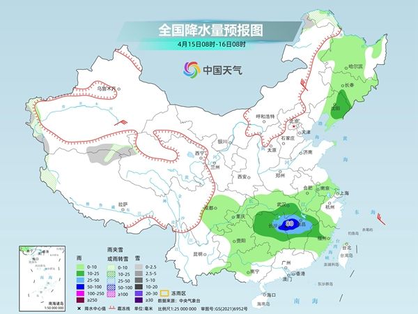 今天,随着低空急流加强北抬,较强雨带也将明显北抬。其中,新疆南疆西部山区、西藏南部等地部分地区有小雪或雨夹雪。内蒙古河套地区、陕西东北部、山西西部和南部、河南中部、湖北中东部、湖南东北部、江西中北部、安徽南部、浙江西南部、福建西北部等地部分地区有中到大雨,其中,江西北部、福建西北部等地部分地区有暴雨,局地大暴雨。