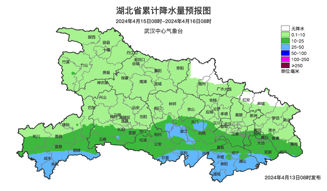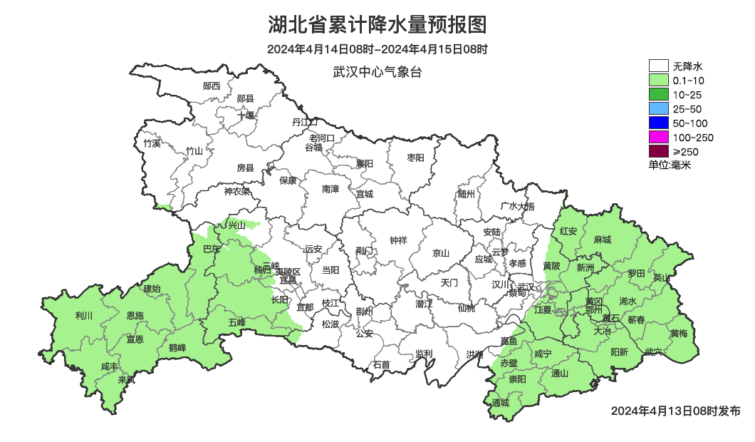 预报来源:武汉中心气象台2024年4月13日08时预报