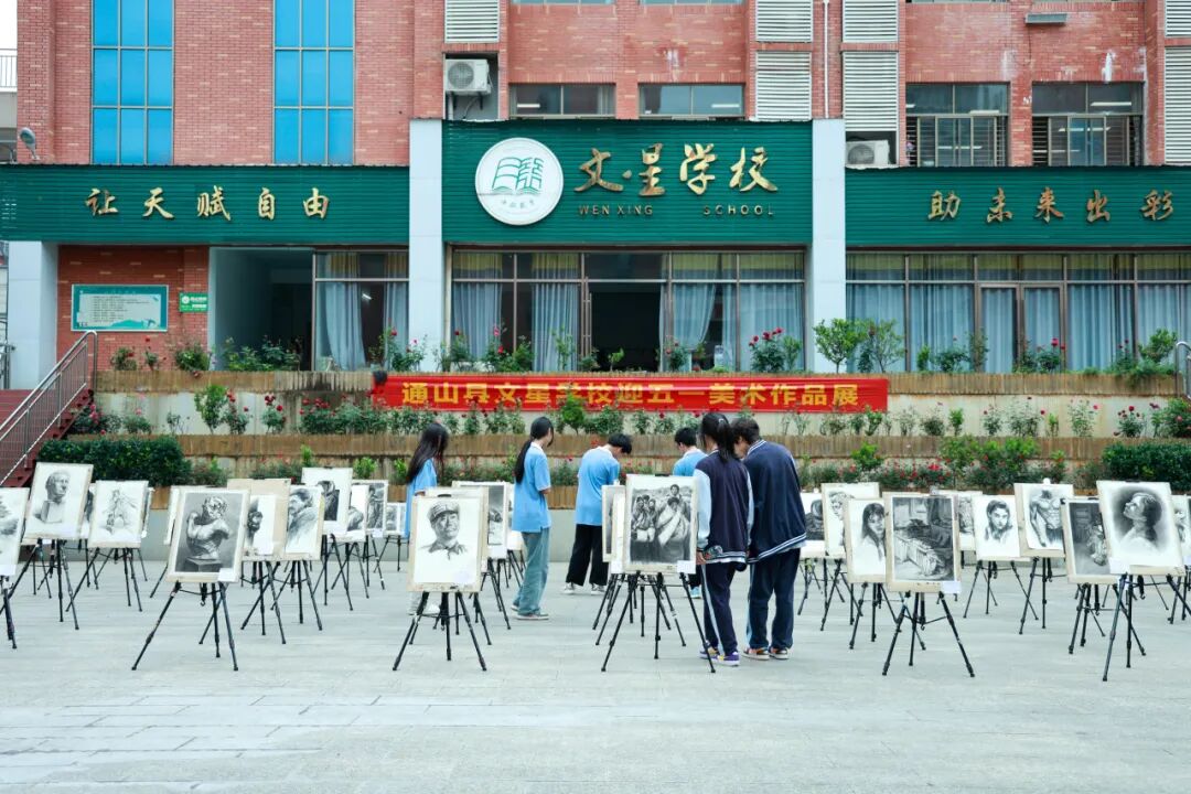 为更好地弘扬中国文化,加强校园文化建设,满足学生多元文化需求、丰富校园文化生活、促进学生全面发展,通山县文星学校美术作品展在校内行政楼广场展出,该作品展以素描之美为主题,成为文星学子们彰显才华的绚烂舞台。