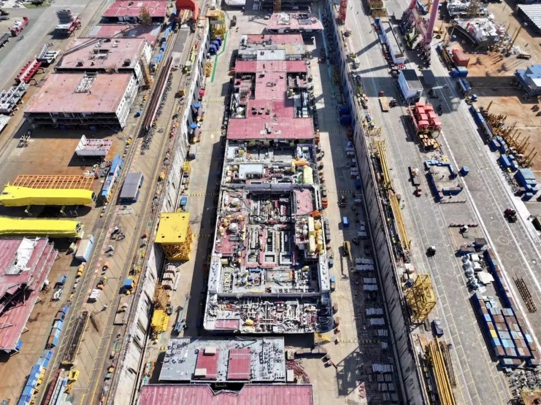 俯瞰第二艘国产大型邮轮搭载总装现场。陆佳骏 摄