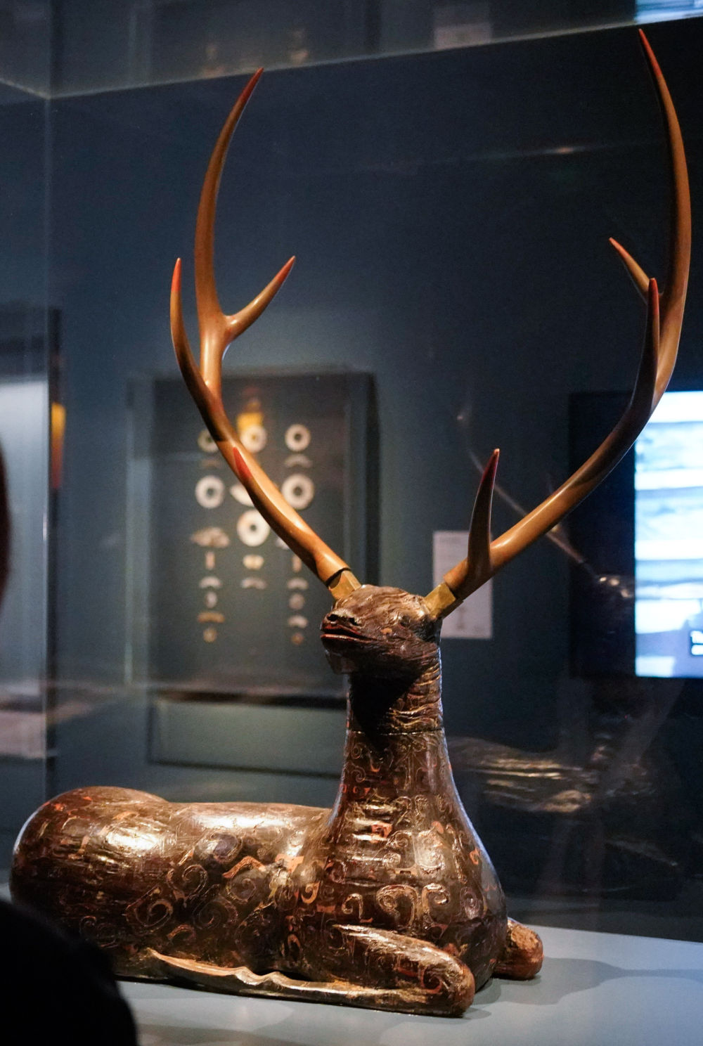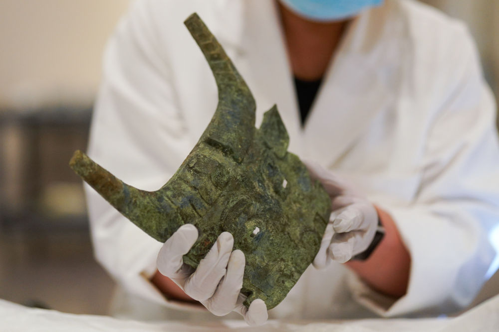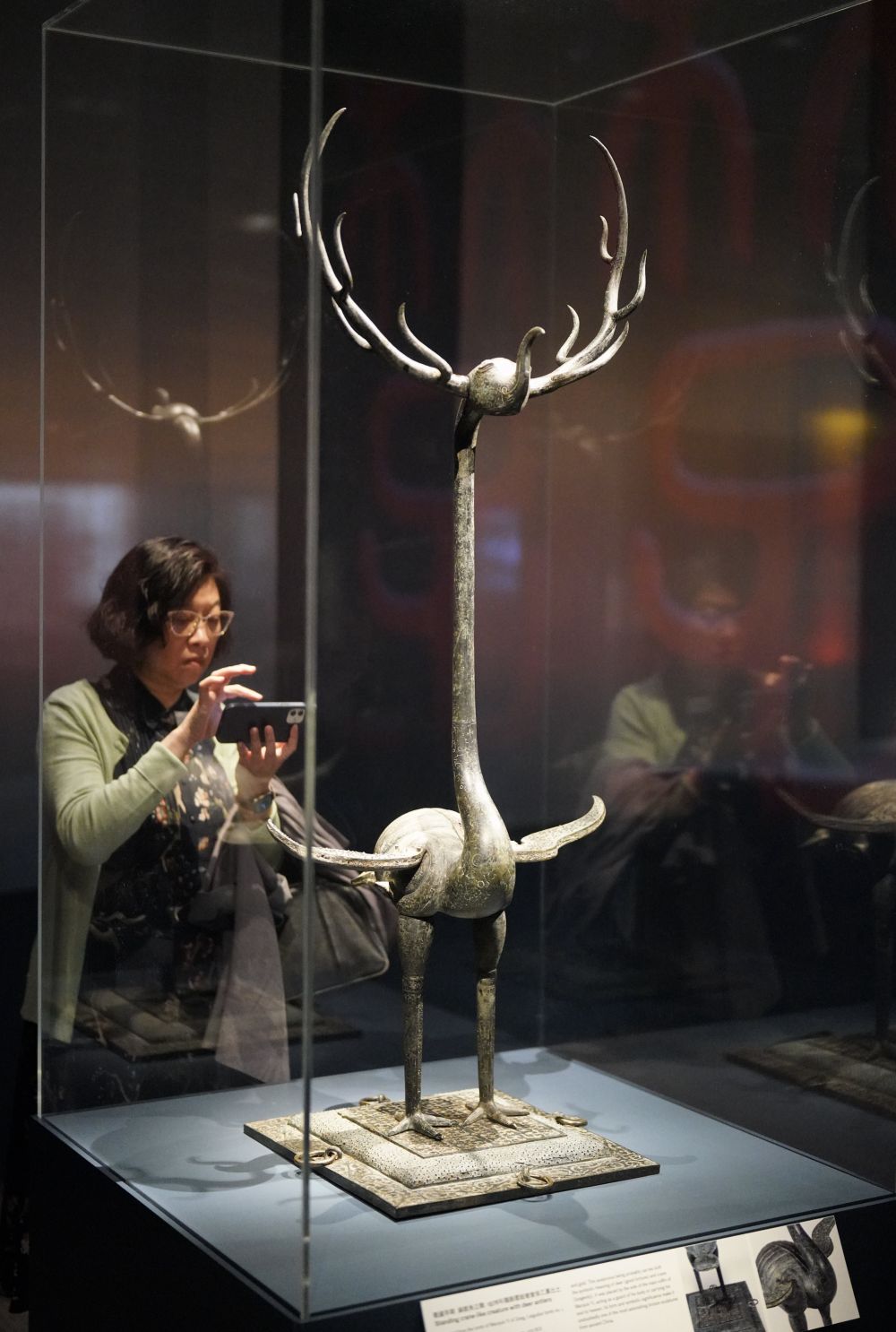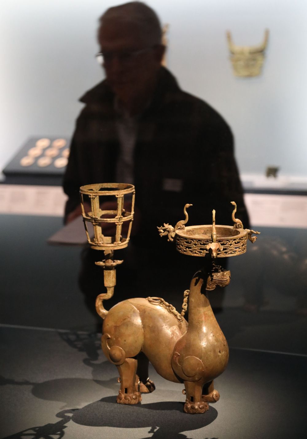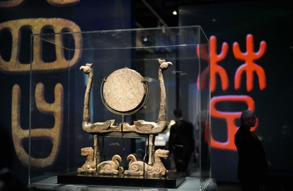 这是4月19日在美国旧金山亚洲艺术博物馆举办的“凤凰故国——青铜时代曾楚艺术展”上拍摄的展品。新华社发(刘艺霖摄)