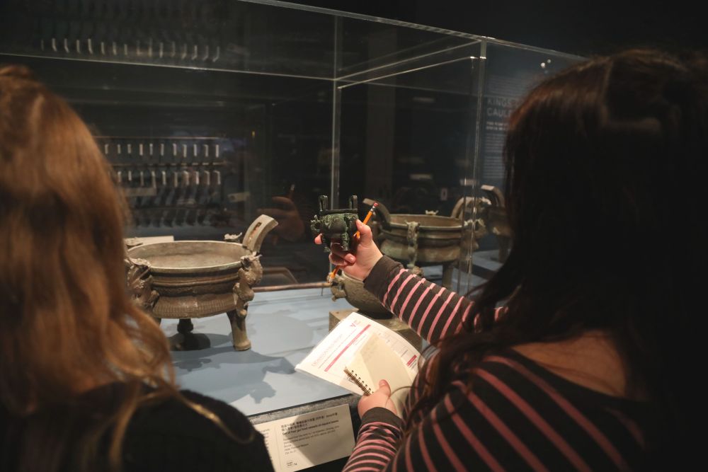 4月19日,观众在美国旧金山亚洲艺术博物馆举办的“凤凰故国——青铜时代曾楚艺术展”上参观。新华社记者 吴晓凌摄