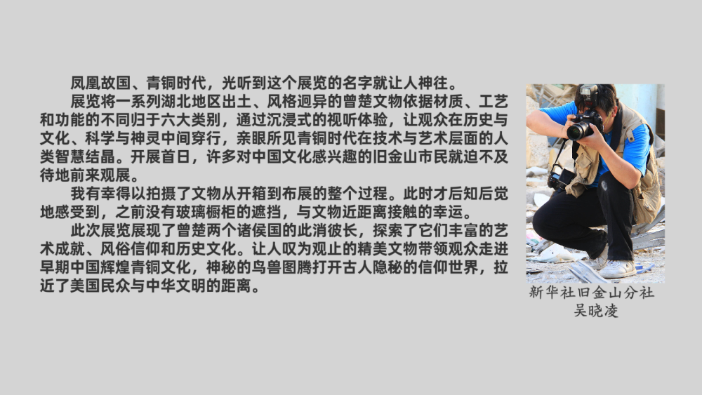 华丽的青铜器、浪漫的玉饰、瑰丽的漆木器、娟秀的丝织品……来自“凤凰故国”湖北的263件(组)珍贵文物近日在美国旧金山亚洲艺术博物馆展出,向海外公众集中展示中国青铜时代的文化。