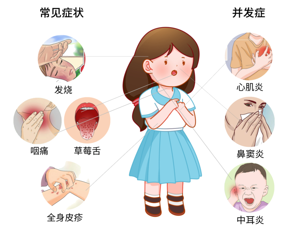 猩红热是由A族β型溶血性链球菌感染引起的急性呼吸道传染病,可引起儿童扁桃体炎、咽峡炎等上呼吸道感染,其并发症有风湿热和急性肾小球肾炎,会严重危害青少年身体健康,是我国法定的乙类传染病。
