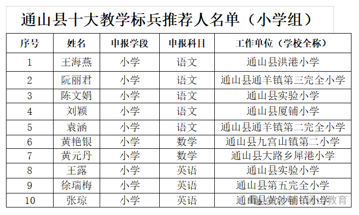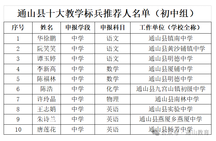 附件: 1.通山县十大教学标兵推荐人名单(初中组)