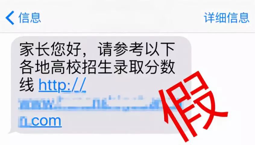 等待录取分数线的过程往往是最令人焦急的,考生和家长总希望能有特殊渠道可以提早查询成绩。不法分子会通过短信,发送带有木马链接的虚拟查询分网址,声称有内部渠道可以提前查分。一旦点击链接,木马病毒便会自动植入手机,获取手机关联的银行卡等信息。