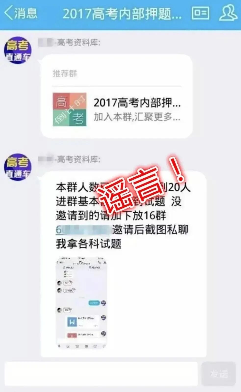 骗子通过QQ谎称自己可以当“高考枪手”,央视曾曝光高考枪手替考利益链,给枪手5万元可考上重点本科。警方提醒