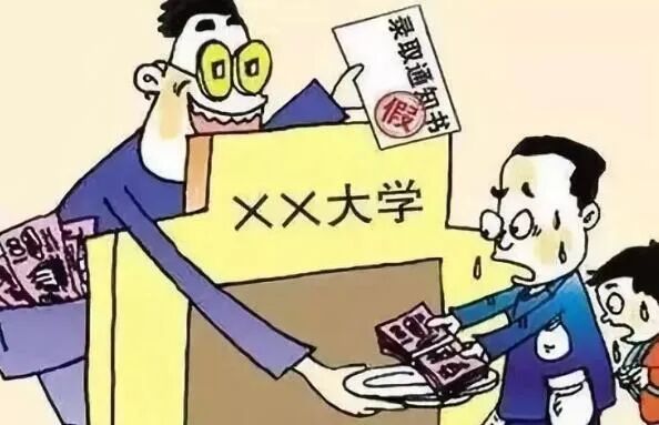 骗子冒充高校招生办人员,向考生寄送伪造的录取通知书,让考生将学杂费打入指定的银行账号,以骗取钱财。类似骗局还有制造虚假的钓鱼网站,骗子的目的就是骗取学生的生活费、学杂费。