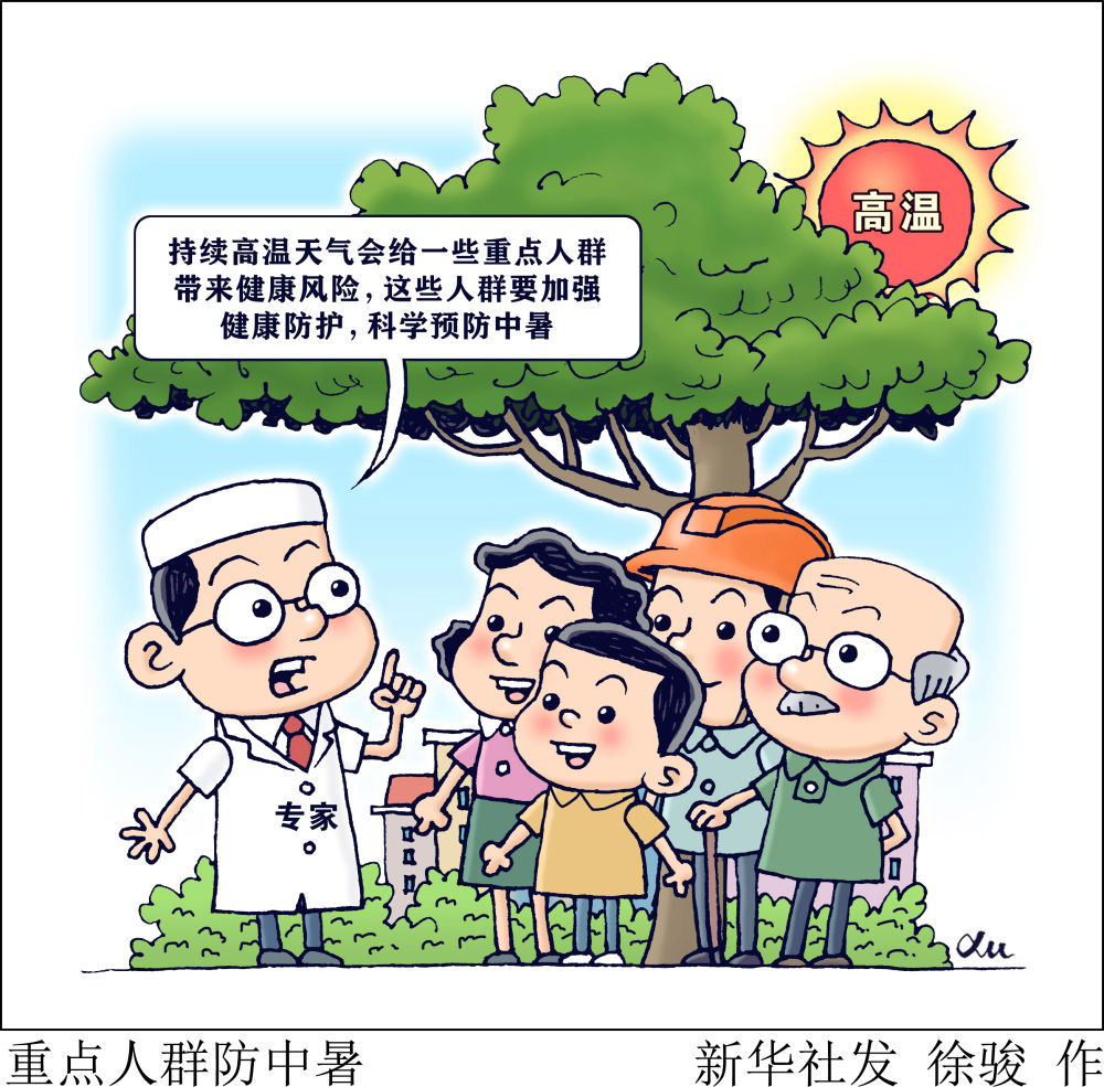 中暑不可小视。如发展为中暑中最严重的类型热射病,甚至可能威胁生命。刘霜提示,小孩、老人、孕妇、肥胖人士等是发生热射病的高危人群。暴露在高温、高湿的环境下,未摄入充足水分来补充出汗引起的液体丢失,从而导致脱水,是发生热射病的重要因素。