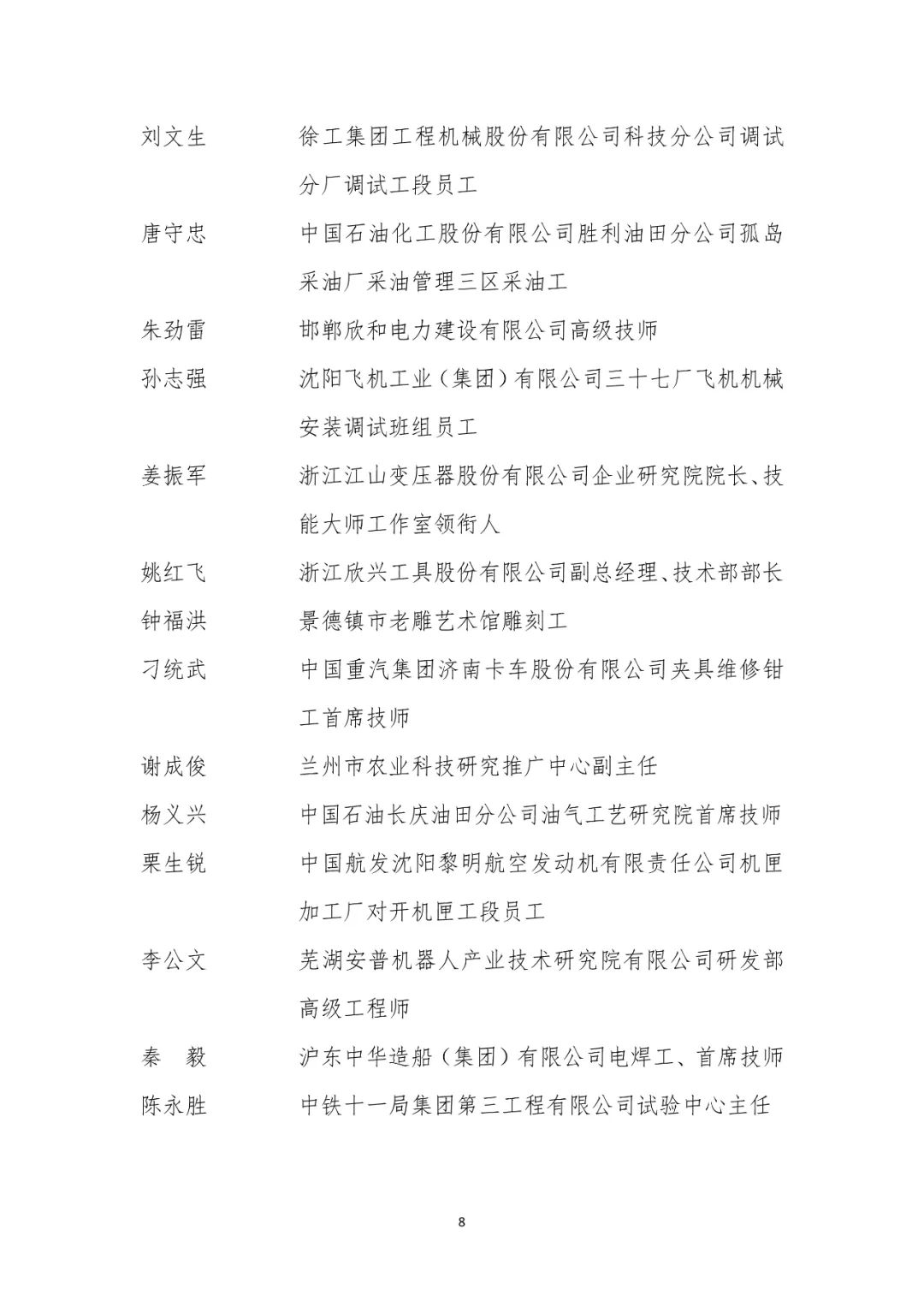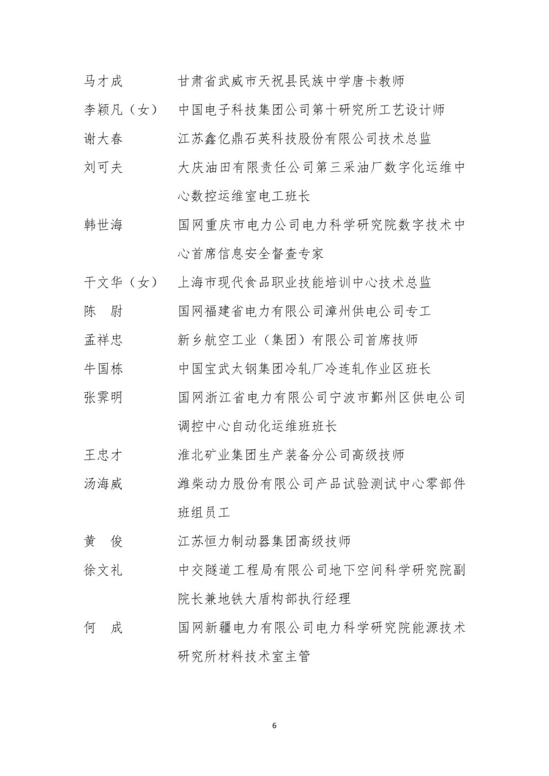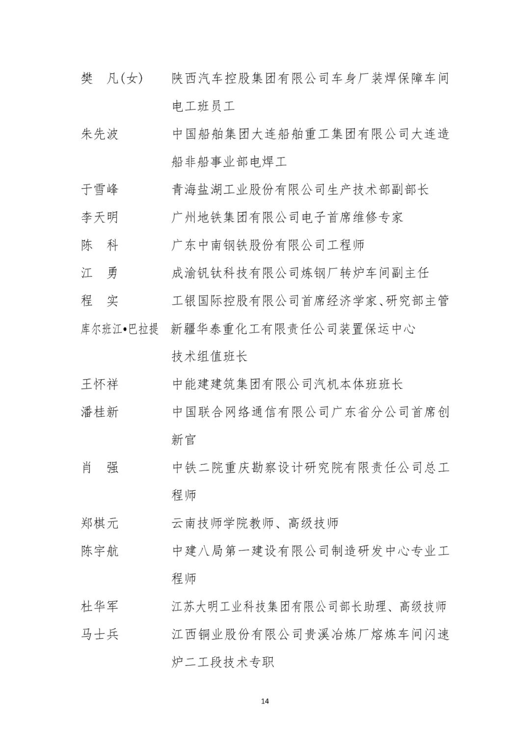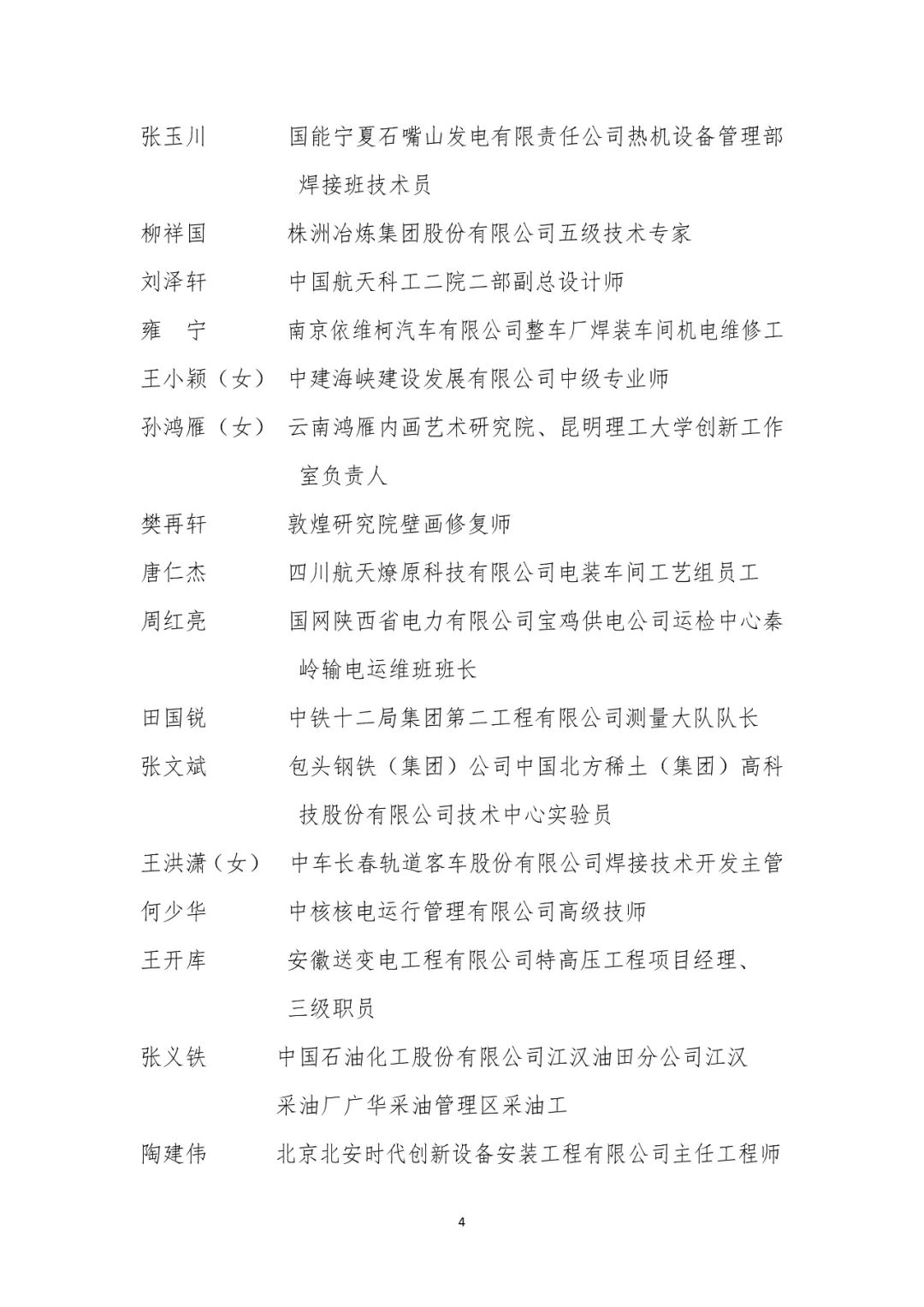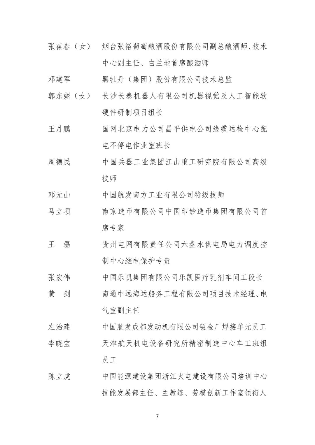 大国工匠人才培育工程2024年拟入选培育对象名单